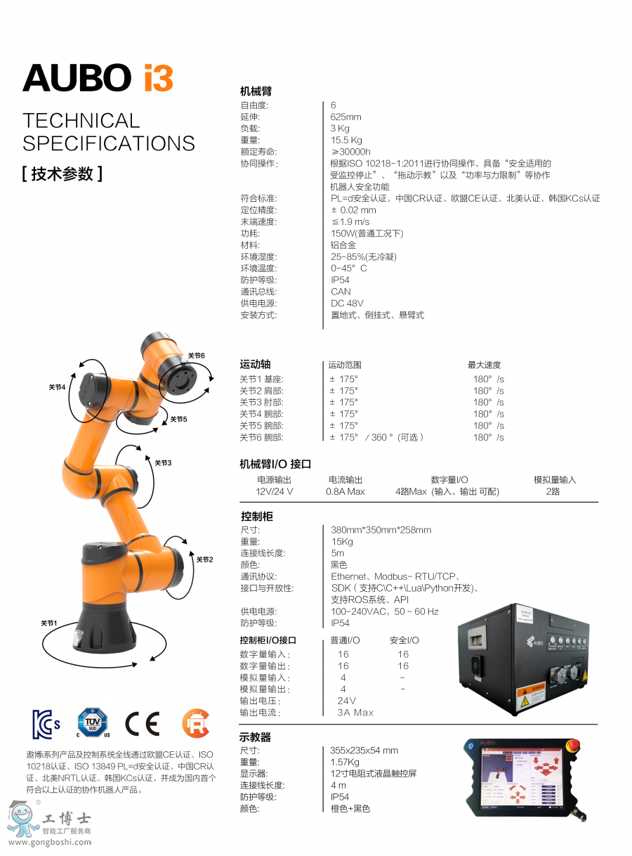 -  AUBO-i3是遨博協作機器人中負載*小的型號