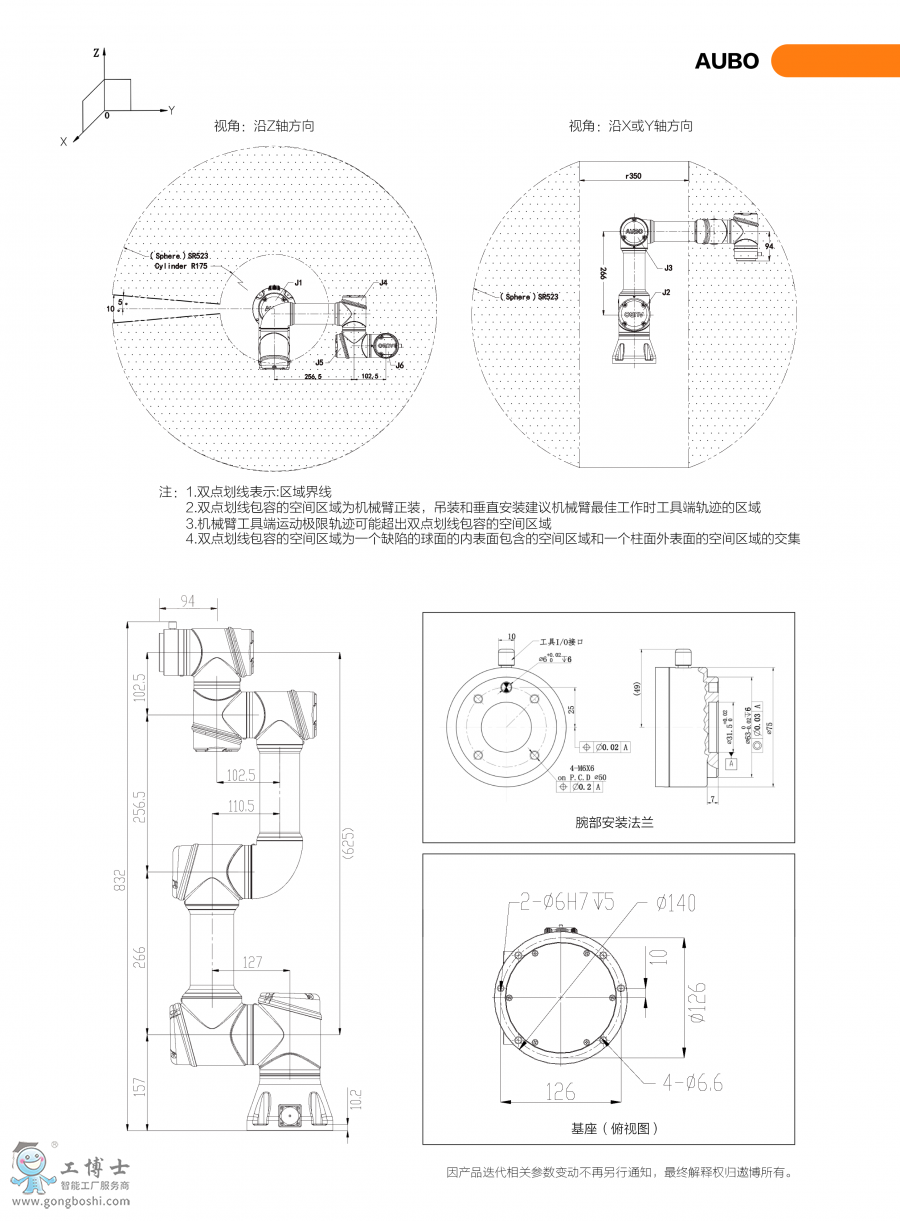 - 臂展為832mm,可滿足工作范圍在625mm以內的作業任務