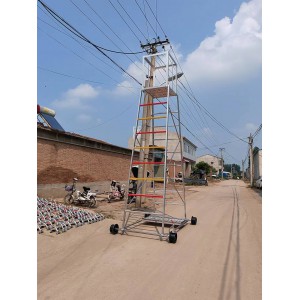 梯身及底架均可快速分解,便于搬遷。 帶有防制動器,既防傾倒,又便于在斜道上作業。 工作臺可以調節高度,便于運輸梯車高度用戶可根據情況自行確定。