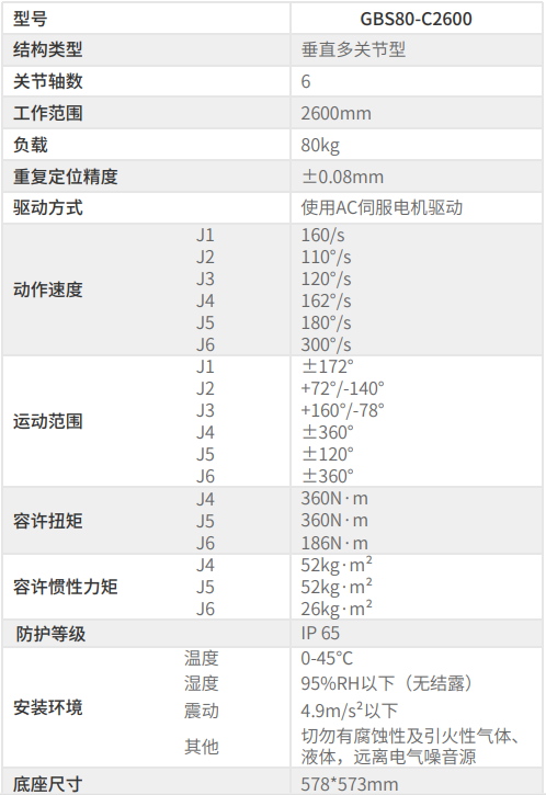 工博士GBS80-C2600負載:80kg中負載工業機器人
