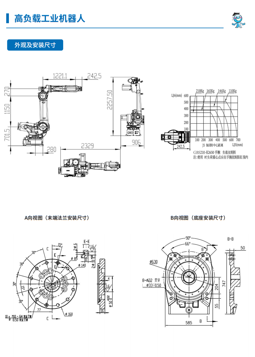 工博士機器人GBS210-K2650 負載:210kg臂展:2650mm |
