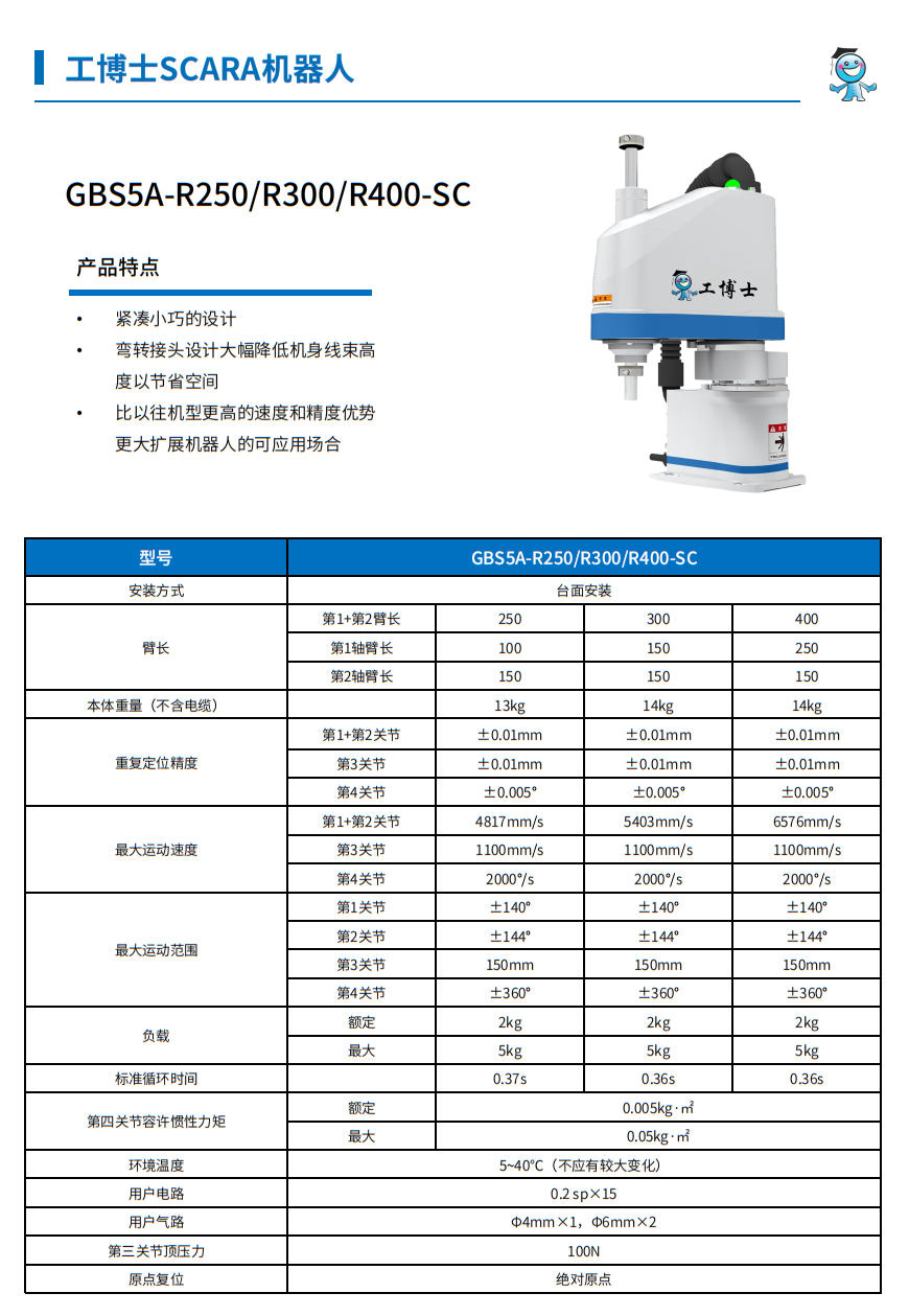 工博士SCARA機(jī)器人GBS5 A-R300-SC 負(fù)載:5kg 臂長(zhǎng):300mm