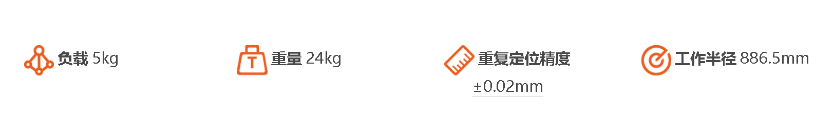 負載5kg,臂展1008mm,***大工作半徑886.5mm