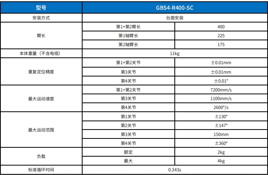 • 臂長400mm,***大負載4kg