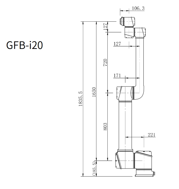 負載:20kg 重量:63kg 重復精度:±0.1mm 工作半徑:1650mm