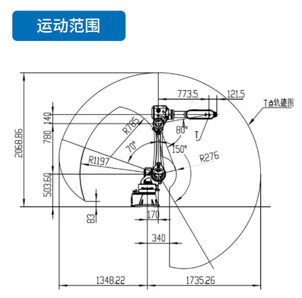 活動(dòng)半徑:1735mm