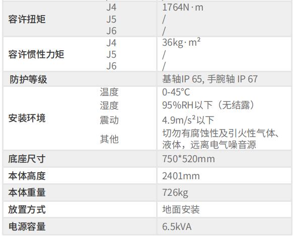 防護等級:基軸IP 65, 手腕軸 IP 67