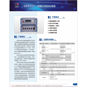 SB8020交流大電流標準源是專門設(shè)計用于檢定或校準交直流鉗形電流表、霍爾電流傳感器、零磁通電流傳感器等具有交流電流測量功能儀表的計量標準器,其擁有9個電流量程,輸出電流范圍為0.3mA~ 2000A,20A及以下量程輸出頻率覆蓋DC~ kHz范圍20A以上量程輸出頻率覆蓋工頻范圍,基本誤差為土0.03%。