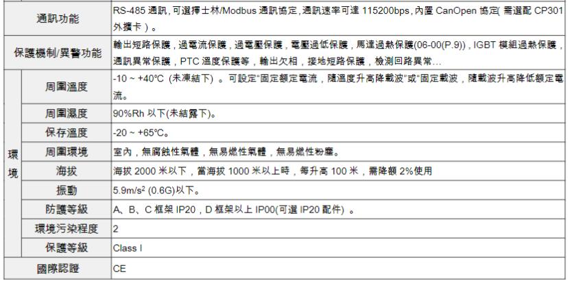2. 高啟動轉矩: 無感測向量控制(SVC)150% 0.5Hz