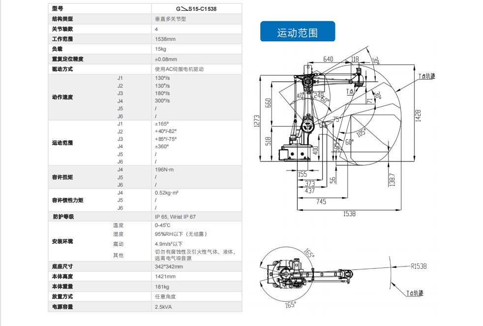 工博士機器人 GBS15-C1538 活動半徑1538mm 負載15kg