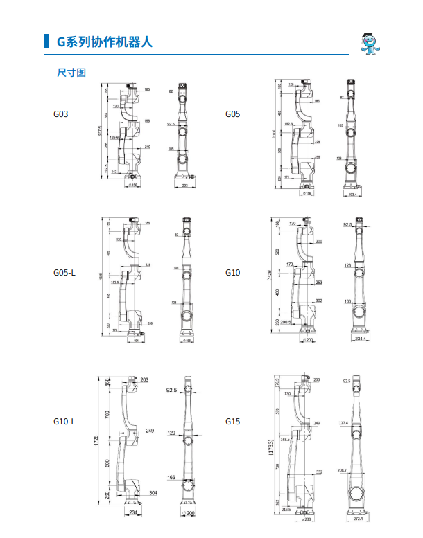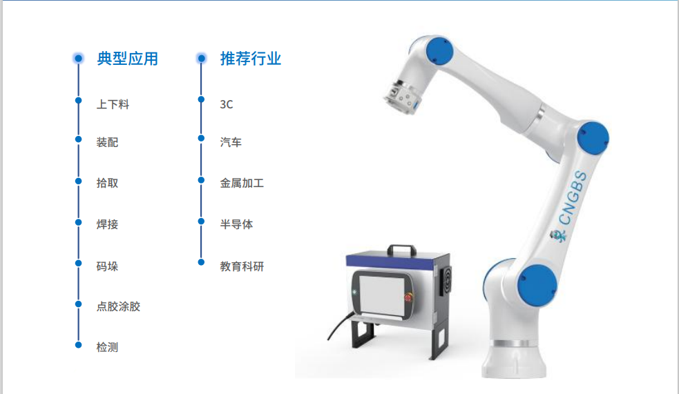 G系列協(xié)作機(jī)器人 G系列6軸協(xié)作機(jī)器人,可應(yīng)用于自動(dòng)化集成生產(chǎn)線裝配、拾取、焊接、研磨、噴漆等領(lǐng)域, 已成功出口多個(gè)國(guó)家和地區(qū)。