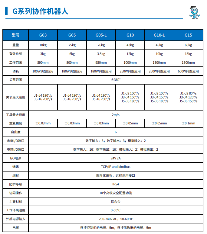 參數(shù): 工博士G系列協(xié)作機(jī)器人