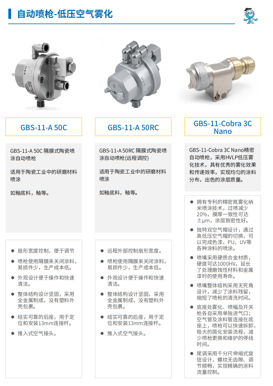 工博士自動噴槍-低壓空氣霧化 GBS-11-A 50C 隔膜式陶瓷噴涂自動噴槍