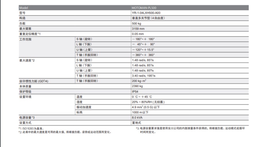 安川機器人PL500 4軸垂直多關(guān)節(jié)型 負載500kg |