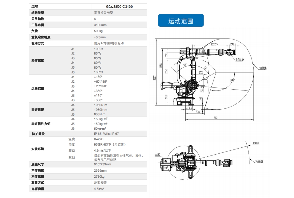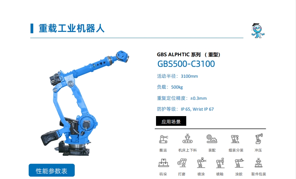 工博士機(jī)器人 GBS500-C3100 活動(dòng)半徑3100mm 負(fù)載500kg
