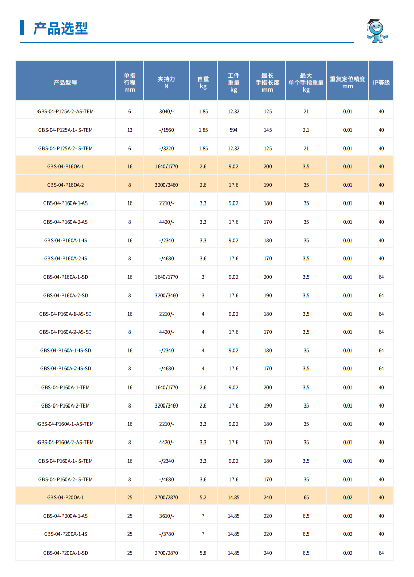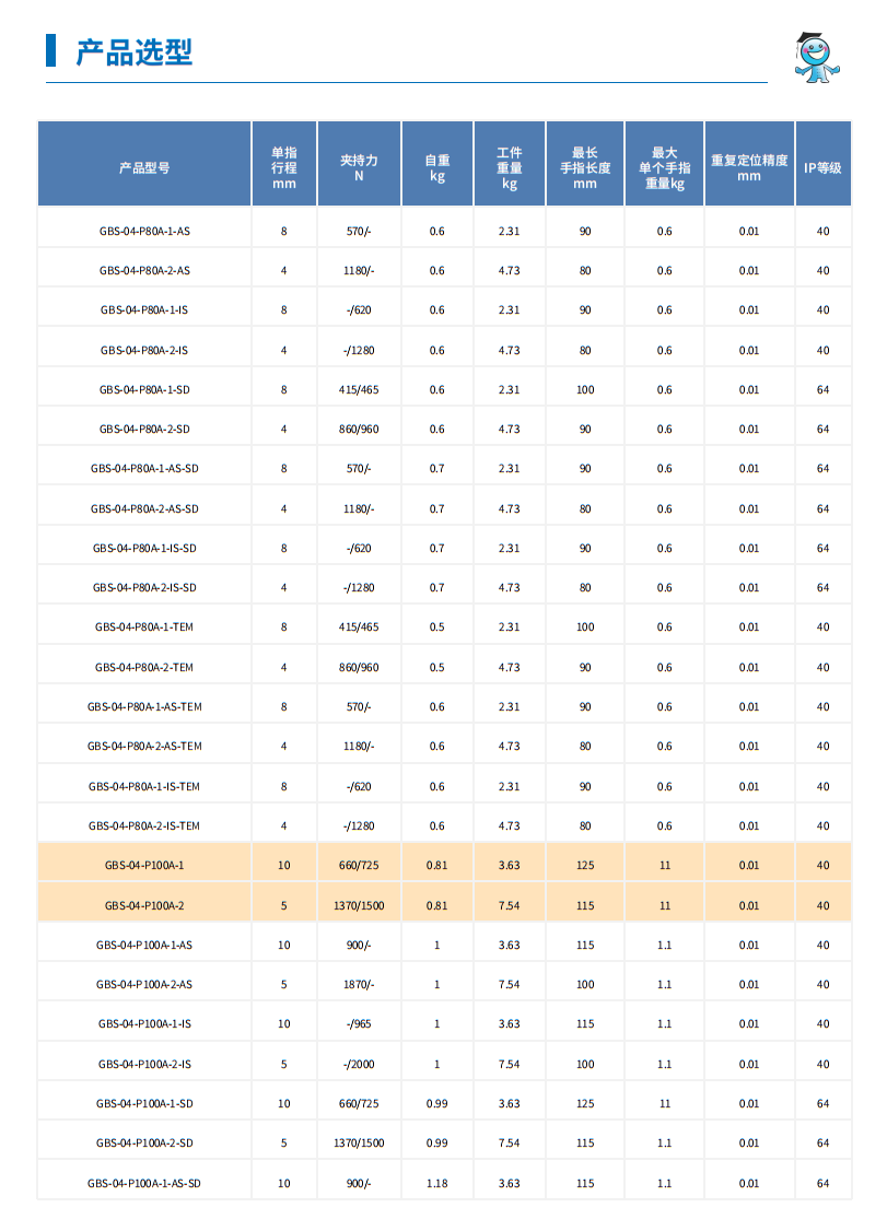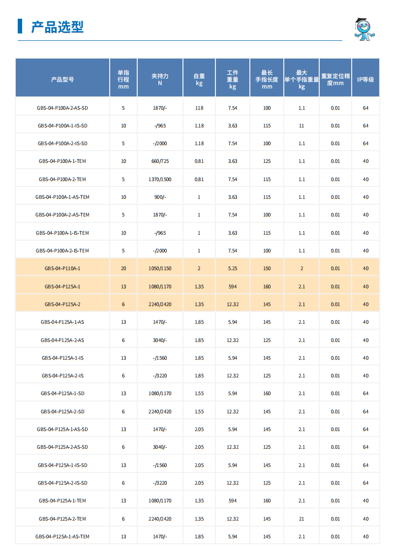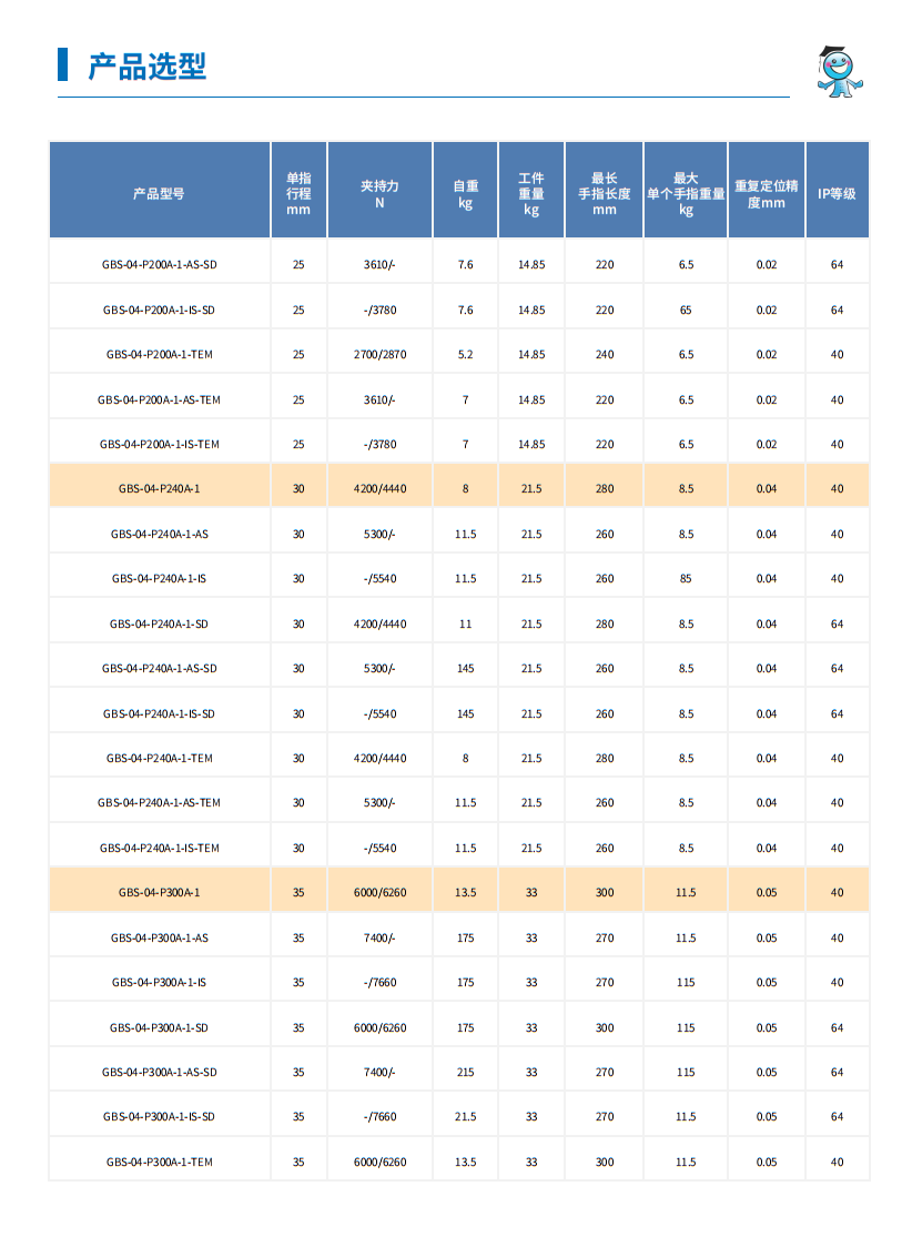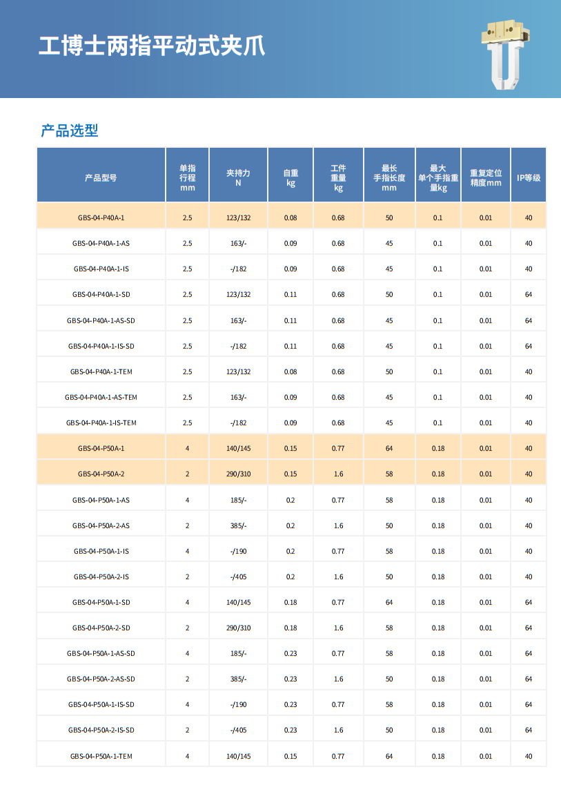 工博士兩指平動式夾爪GBS-04-P240A-1-IS-SD單指行程30mm夾持力-/5540N |
