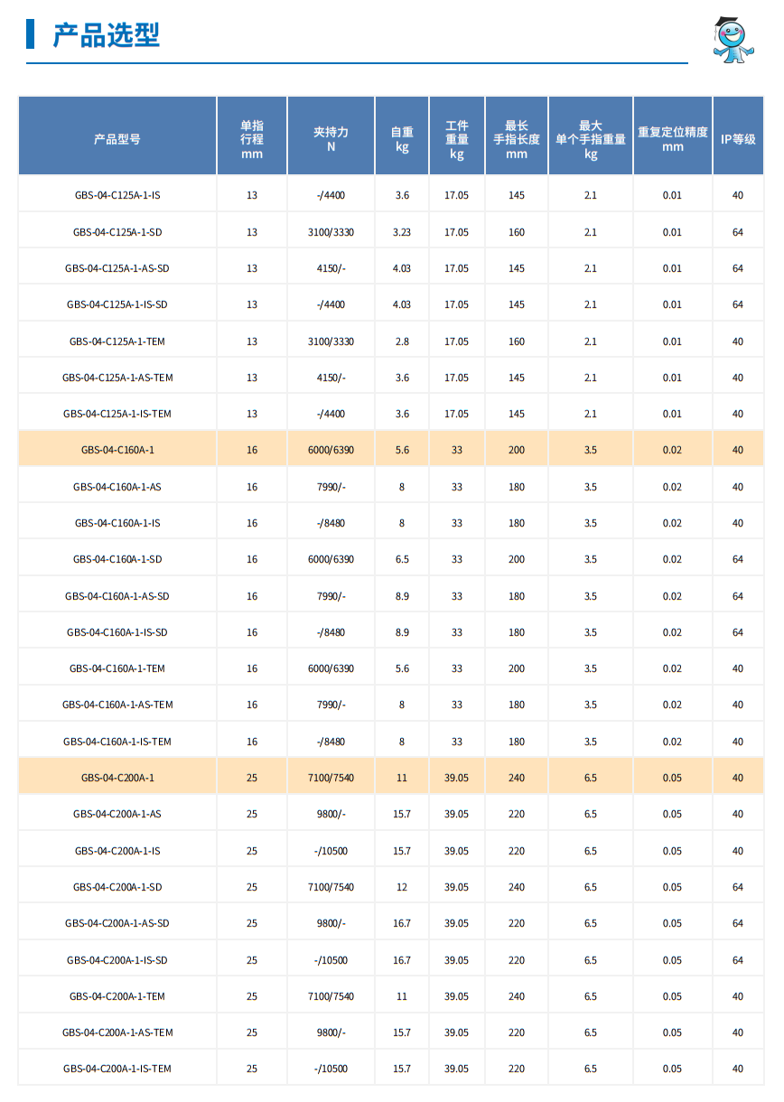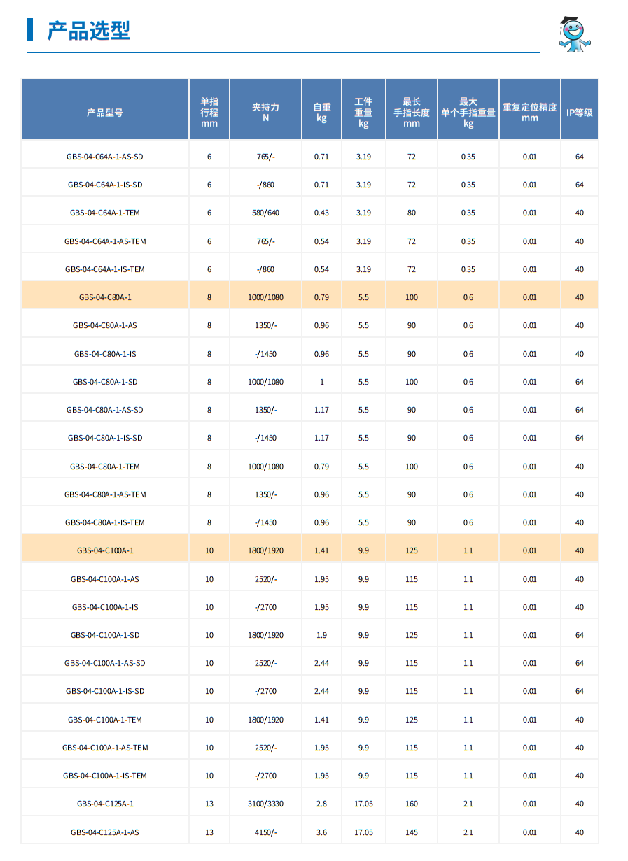 工博士三指定心式夾爪GBS-04-C160A-1-AS單指行程16mm夾持力7990/-N |