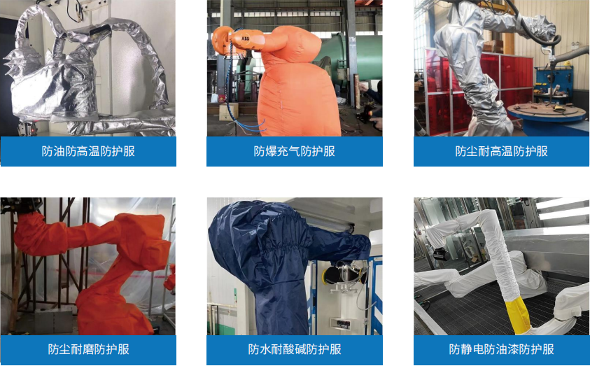 主要用于汽車制造、3C電子、拋光打磨和上下料等領(lǐng)域,主要起到防止涂料沾染機(jī)器人,防塵防靜電,
