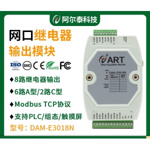 DAM-E3018N為8路繼電器輸出模塊,以太網通訊接口,帶有標準Modbus TCP協議。配備良好的人機交互界面,使用方便,功能豐富。