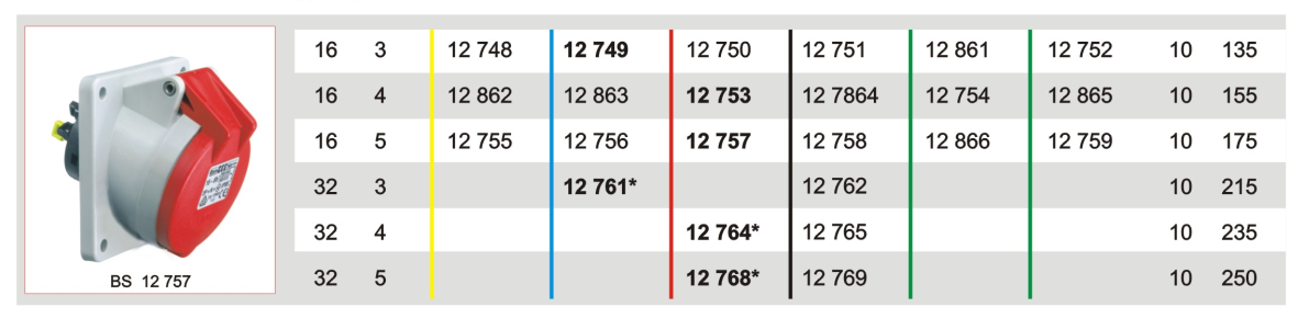 霸士BALS德國(guó)暗裝插座斜插式BS 12 757 5P/16A/400V/IP44
