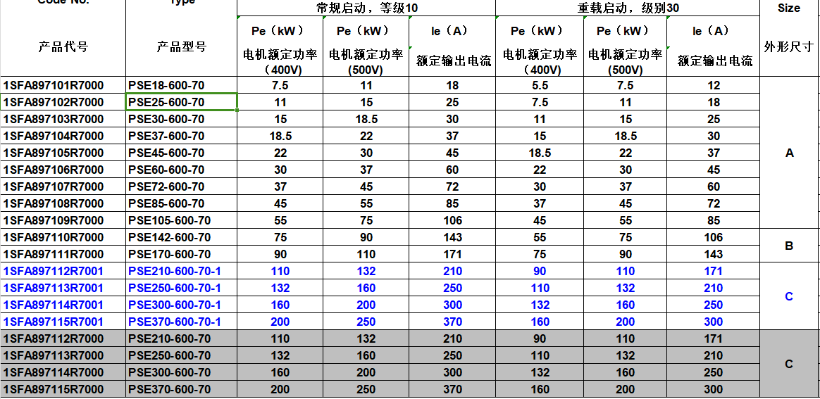 ABB軟啟PSE210-600-70-1 |