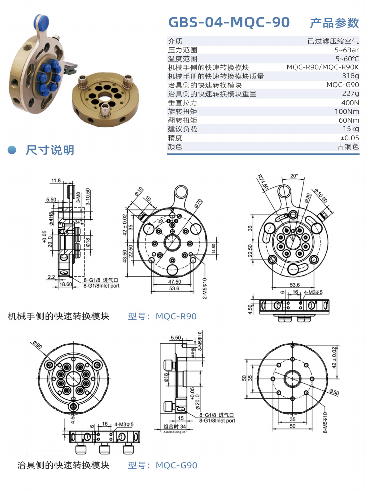 工博士機器人快換裝置,GBS-04-MQC-90,圓形手動快換盤