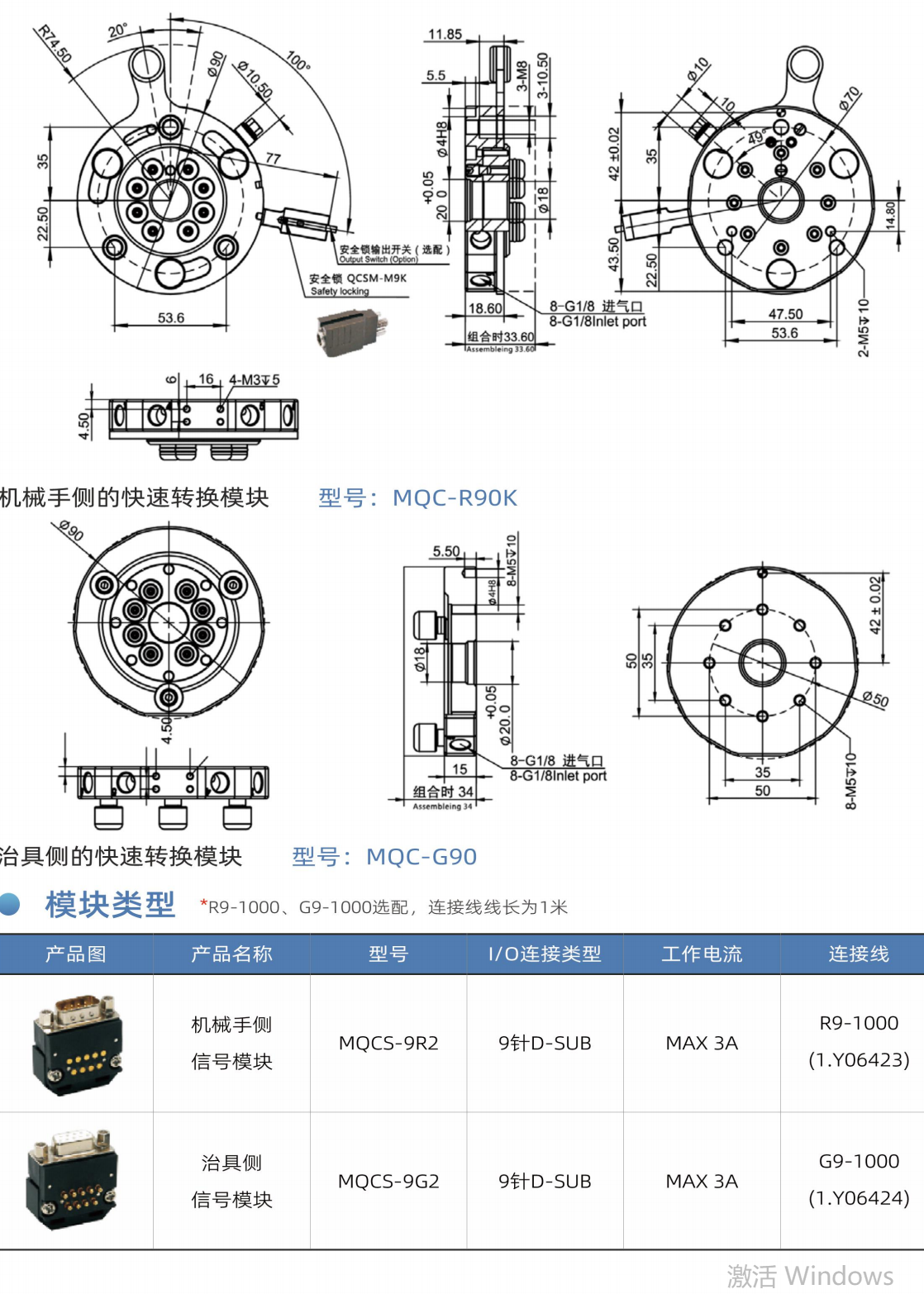 機械手側(cè)的快換轉(zhuǎn)換模塊型號:MQC-R90