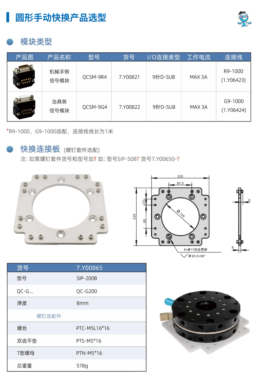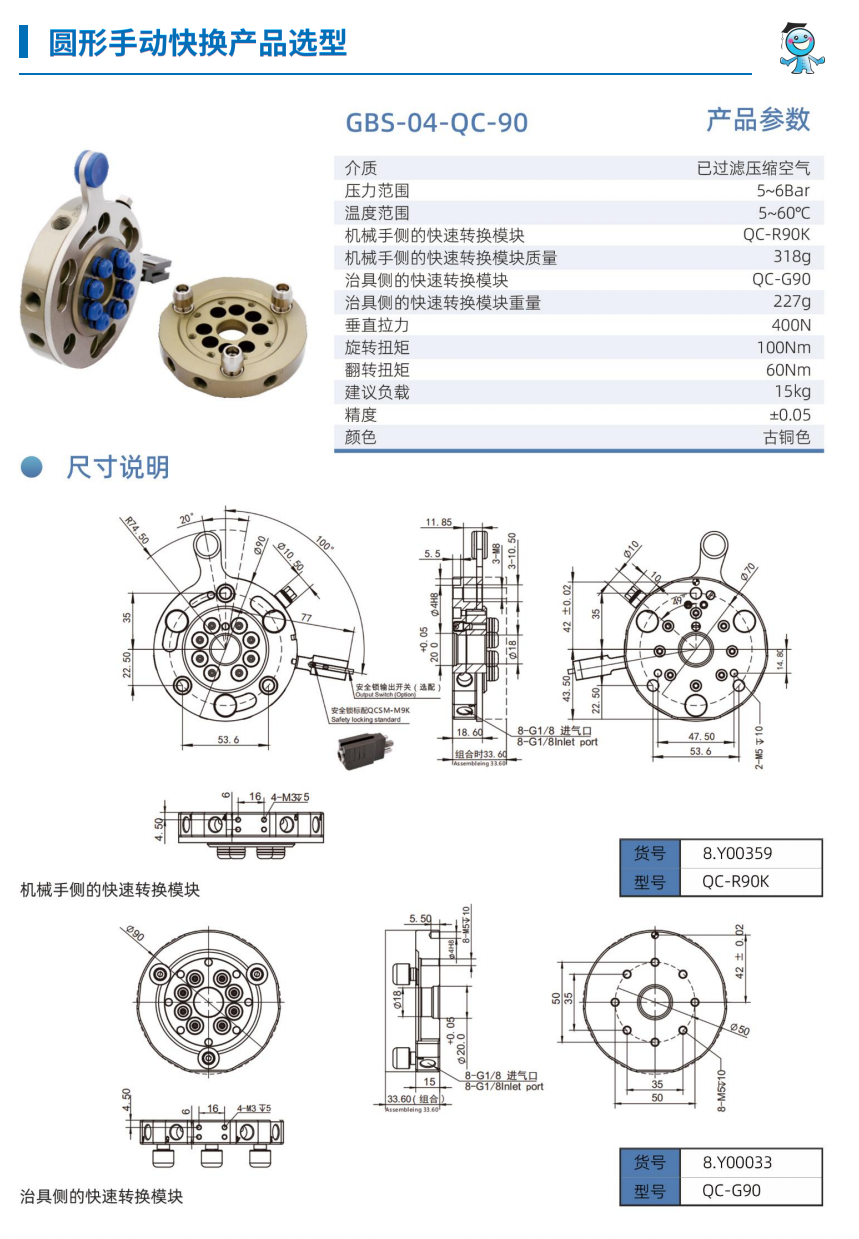 工博士機器人圓形手動快換裝置GBS-04-QC-90 負載15KG |