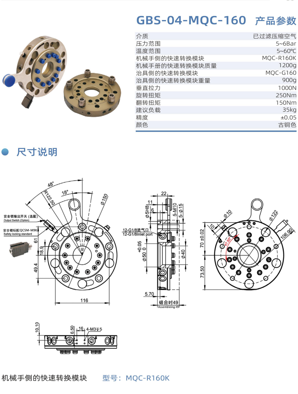 機械手側(cè)的快換轉(zhuǎn)換模塊型號:MQC-R160K