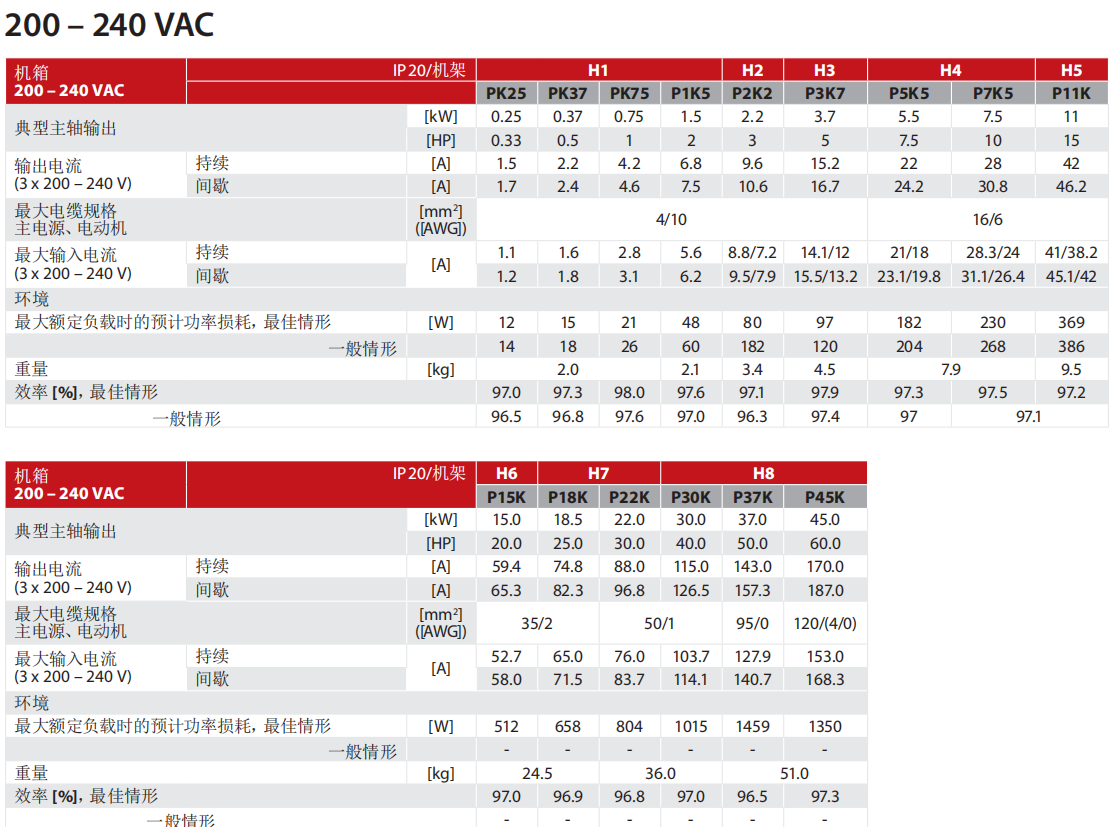 三相200-240 V ...........................0.25-45 kW