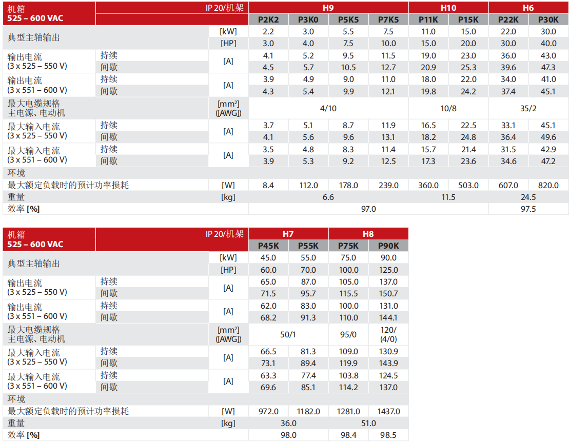 三相525-600 V ............................ 2.2-90 kW