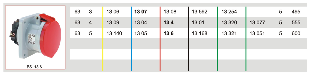 霸士BALS德國暗裝插座直插式BS 13 6 5P/63A/400V/IP44