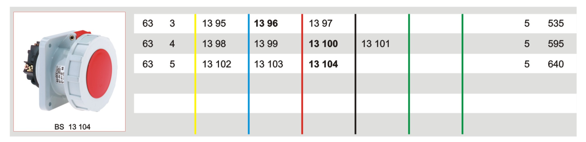 霸士BALS德國暗裝插座直插式BS 13 104 5P/63A/400V/IP67