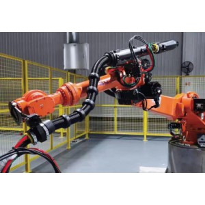 是一個適用于幾乎所有機器人的通用型模塊,憑借著可快速安裝、安裝空間要求小和可平行貼近機器人安裝的這些優(yōu)勢。在工業(yè)機器人使用后的三個月,在機器人管線包的導向和保護下,機器人線纜性能保持良好,使用了耐磨損材料的機器人管線包拖鏈外層也幾乎看不到磨損,拖鏈在機器人上運行狀態(tài)非常好。“機器換人”在重鑄中國制造的道路上,將扮演主力的角色,而機器人管線包將在此道路上為機器人保駕護航。電纜貼近機器人,同步運行,磨損極低,安裝空間大幅減少。