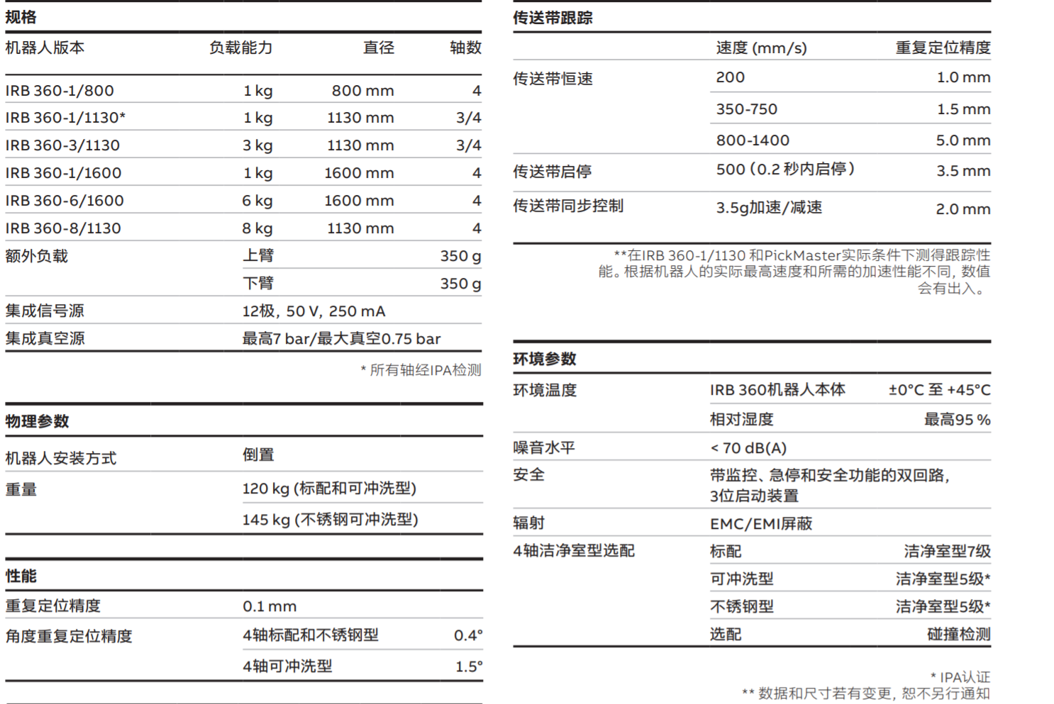 IRB 360系列包括有效負載為1kg、3kg、6kg和8kg的版本,工作范圍可達到800mm、1130mm和1600mm,可滿足各種需求。