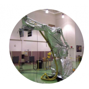 工博士機器人防護服 工博士機器人防護機器人防塵防護服 用途較為廣泛,主要針對正常環境下工作的機器人; 防止粉塵、金屬顆粒等影響機器人的正常運行;節約 人工清潔和售后維修成本。服,能夠保護工業機器人本體,降低其損壞頻率,同時減少人工清理和 維護保養成本。、采用芳綸復合材料設計制作 2、具有高強度(拉伸>1900N) 3、具有高耐磨性(摩擦>100000轉) 4、具有抗酸堿性 5、具有抗靜電性 機器人防水防酸堿防護服 專門針對機器人清洗環境研發的防護服,能更好的 防止水分子及腐蝕性液體對機器人本體及附加管線 的侵蝕,采用較好的防