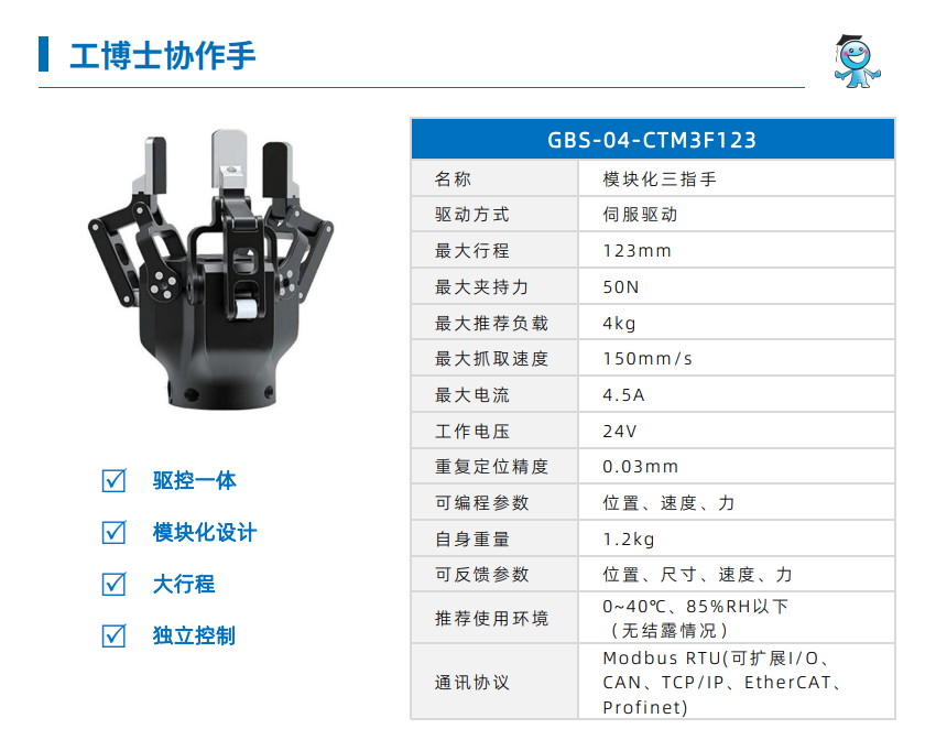 工博士 工博士協作手GBS-04-CTM3F123 大負載 包絡抓取