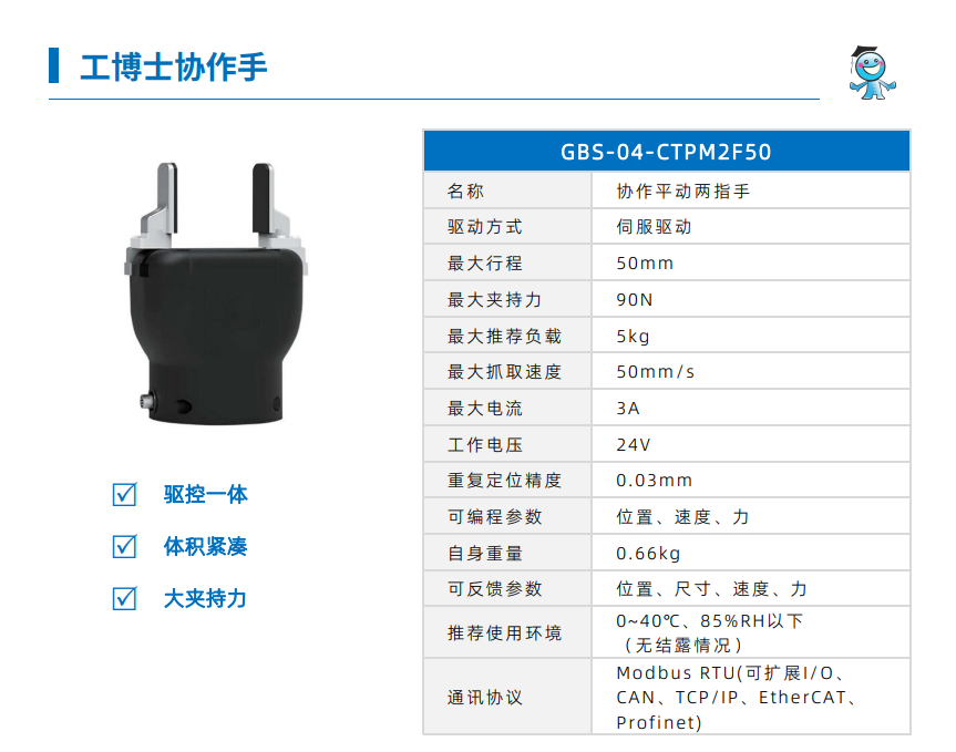 工博士 工博士協作手 GBS-04-CTMG3F60 協做平動兩指手大負載 包絡抓取