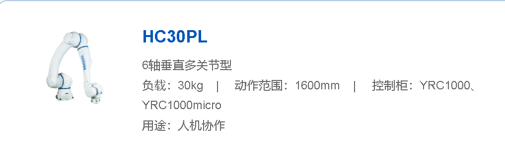 安川 人機協作機器人 HC30PL負載:30kG動作范圍:1600mm