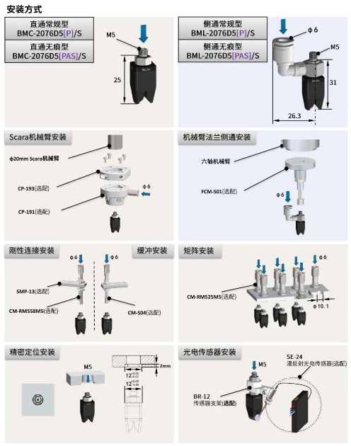 柔觸夾爪:BMC-2076D5[P]/S,建議負載(0-7g) |