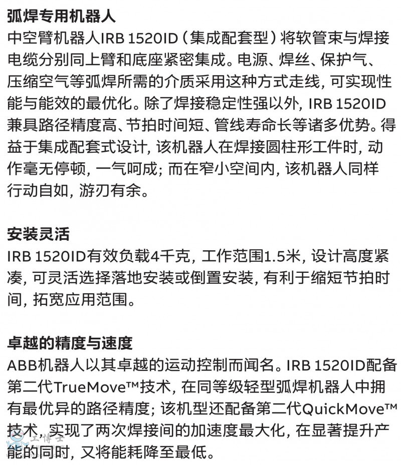 IRB 1520ID 負載4KG,臂展1500mm,ABB焊接專用機器人,中空臂 |