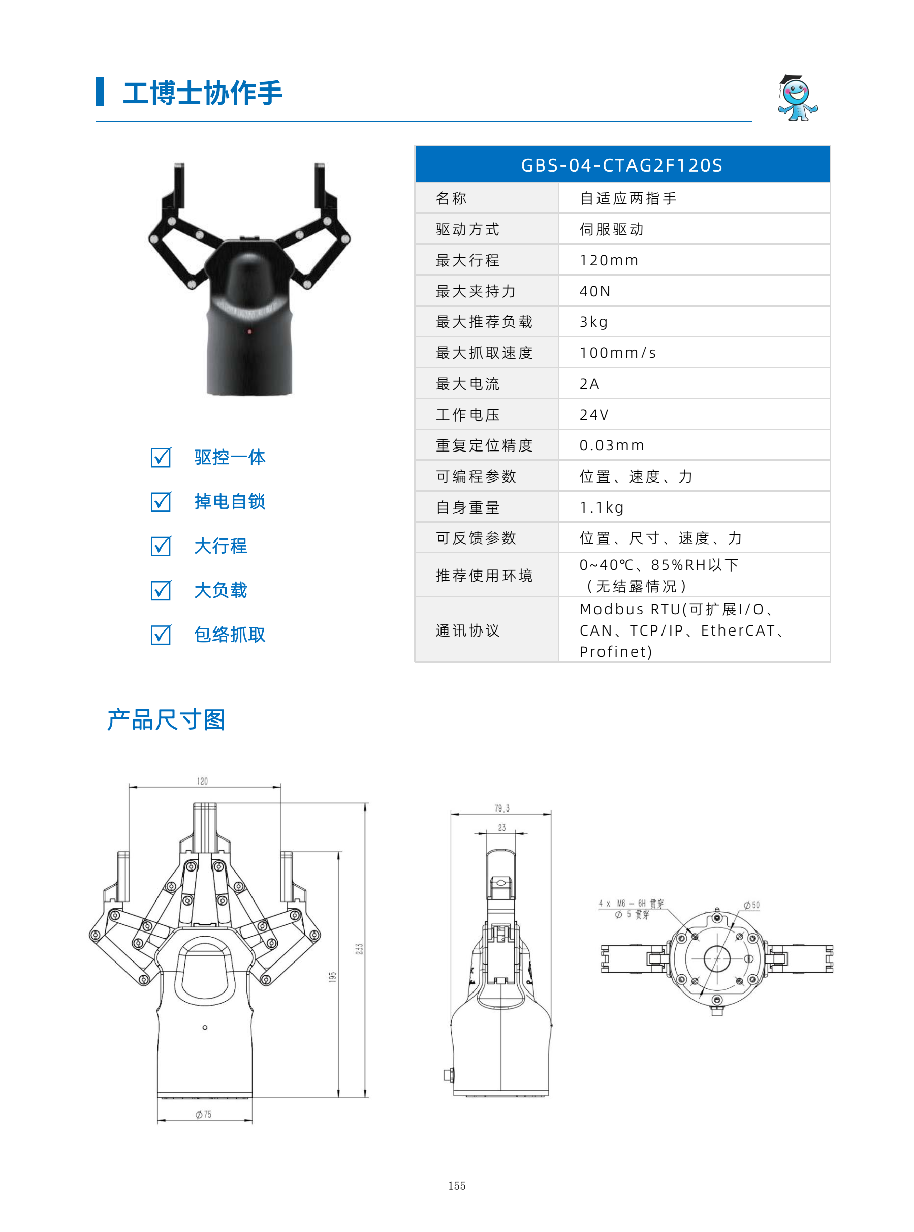 工博士協作手 GBS-04-CTAG2F120S 自適應兩指手 |