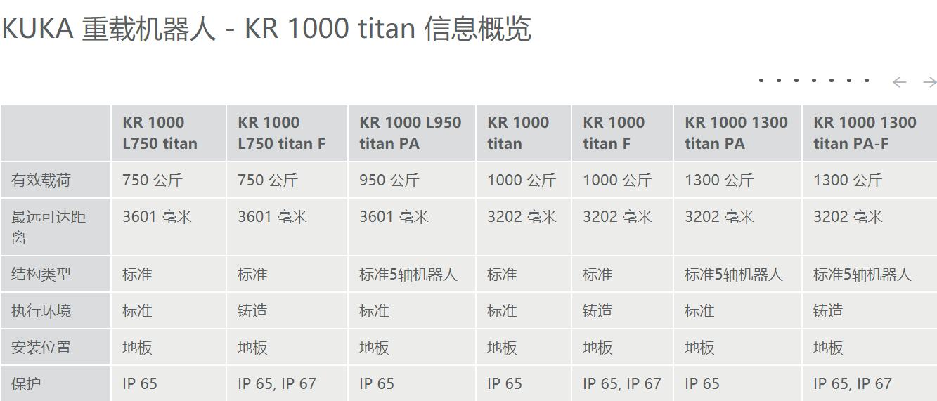 KR 1000 titan 是我們力大無窮的重載型機器人。該六臂重載機器人也可以從遠處安全地移動重型部件和組件。