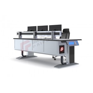 、吖耋w上部(平臺式除外)首層為傾斜面,與臺面夾角為105度,從第二層起與臺面夾角為90度。有利于操作員在長時間目視畫面時眼睛不疲勞;