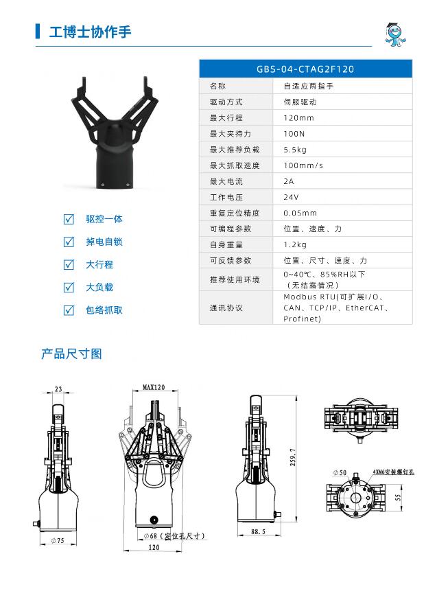 工博士協作手 GBS-04-CTAG2F120 自適應兩指手可配安川全系列機器人 |