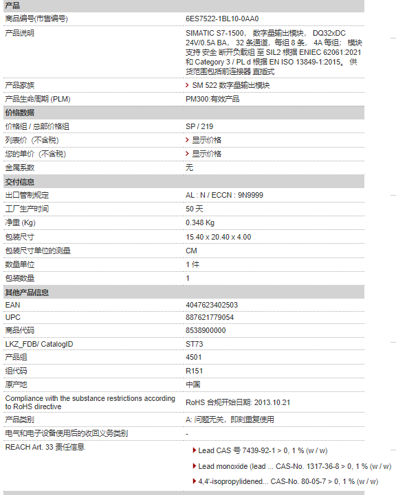 西門子PLC模塊 6ES7522-1BL10-0AA0