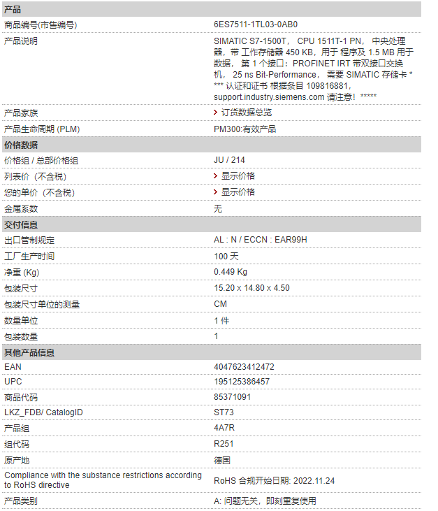 西門子PLC模塊 6ES7511-1TL03-0AB0