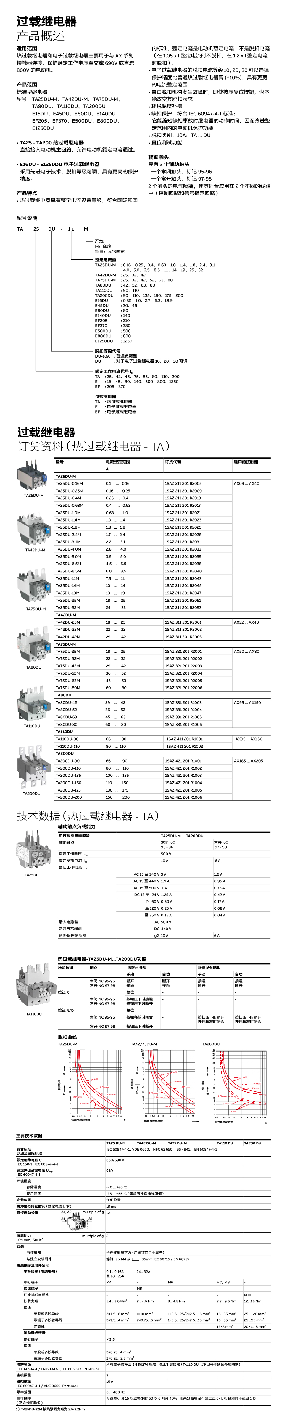 ABB TA 熱過載繼電器TA25DU-4.0M產品說明書