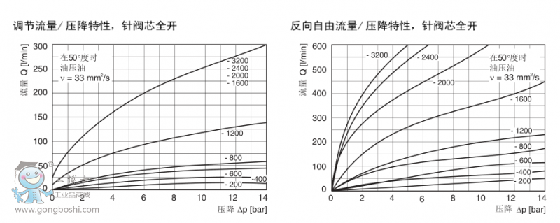 二、Parker派克F系列管式單向節流閥特性參數: