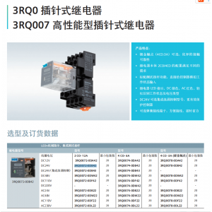西門子 高性能型插針式繼電器 3RQ0072-0DB43 DC24V(集成浪涌抑制) |